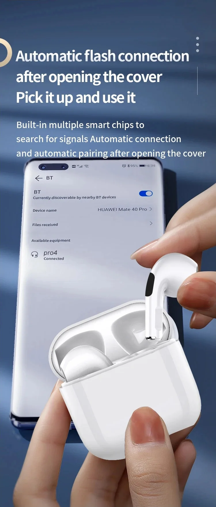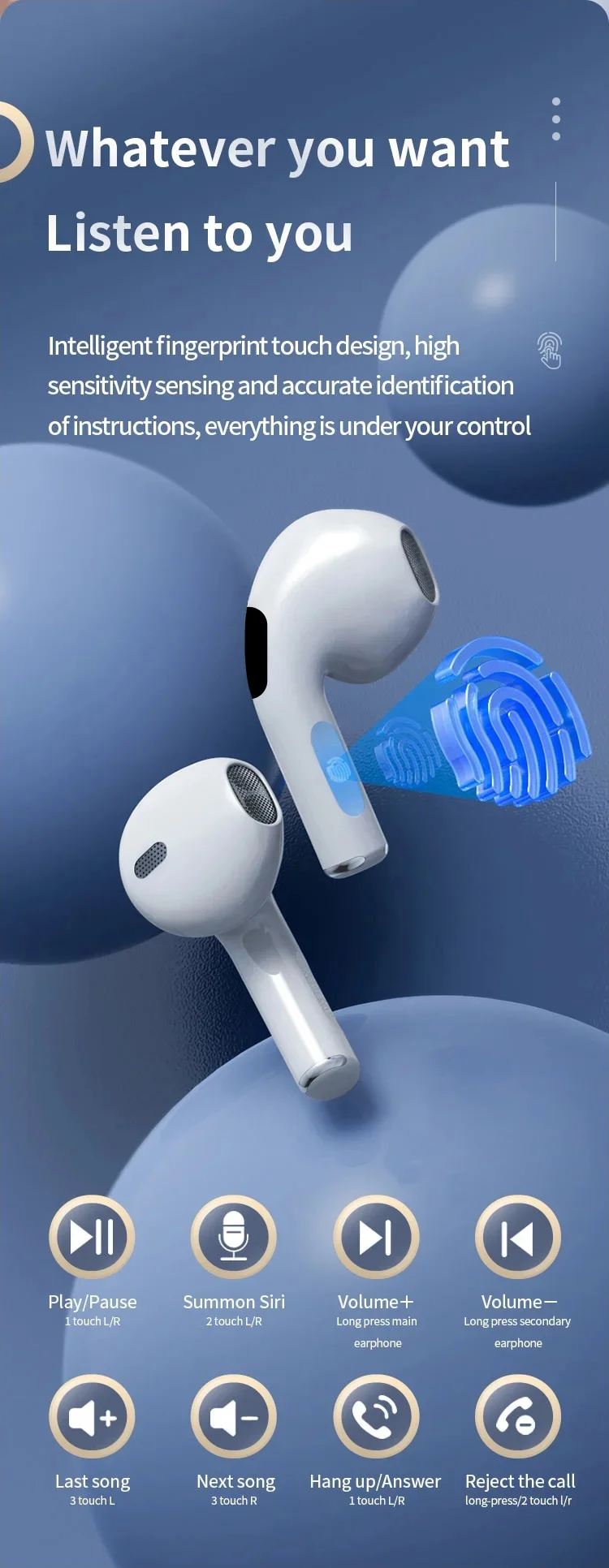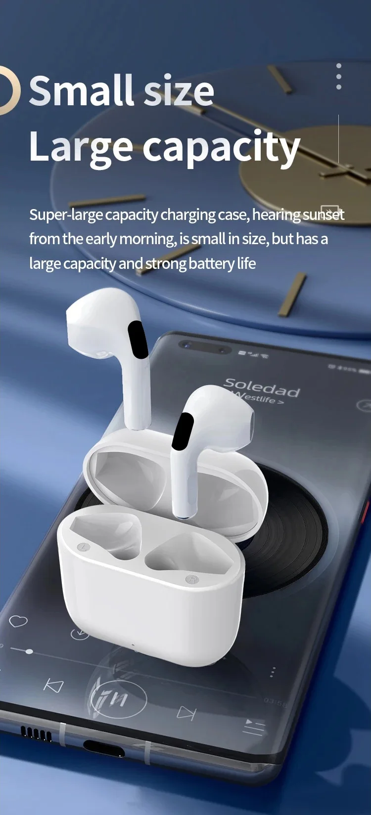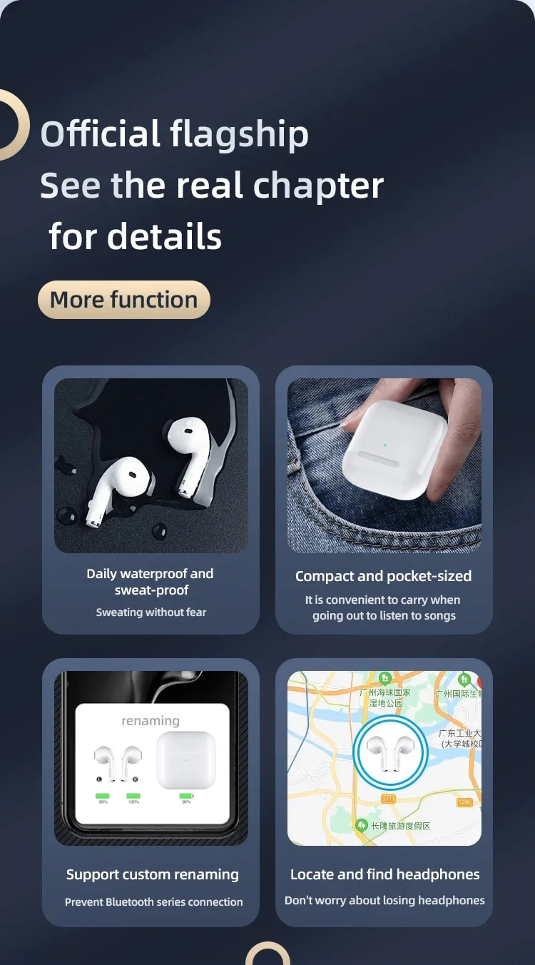 Main Feature:1. True wireless, binaural call,2. Digital battery display,3, Touch function4. Brass ring horn sound quality5. Low power6, breathing light
